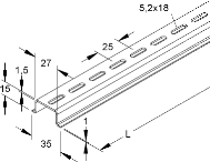 Tragschiene Modell 2934, Hutschiene 35 mm, Tragschiene TS 35 ähnlich DIN EN 60715, gelocht. |