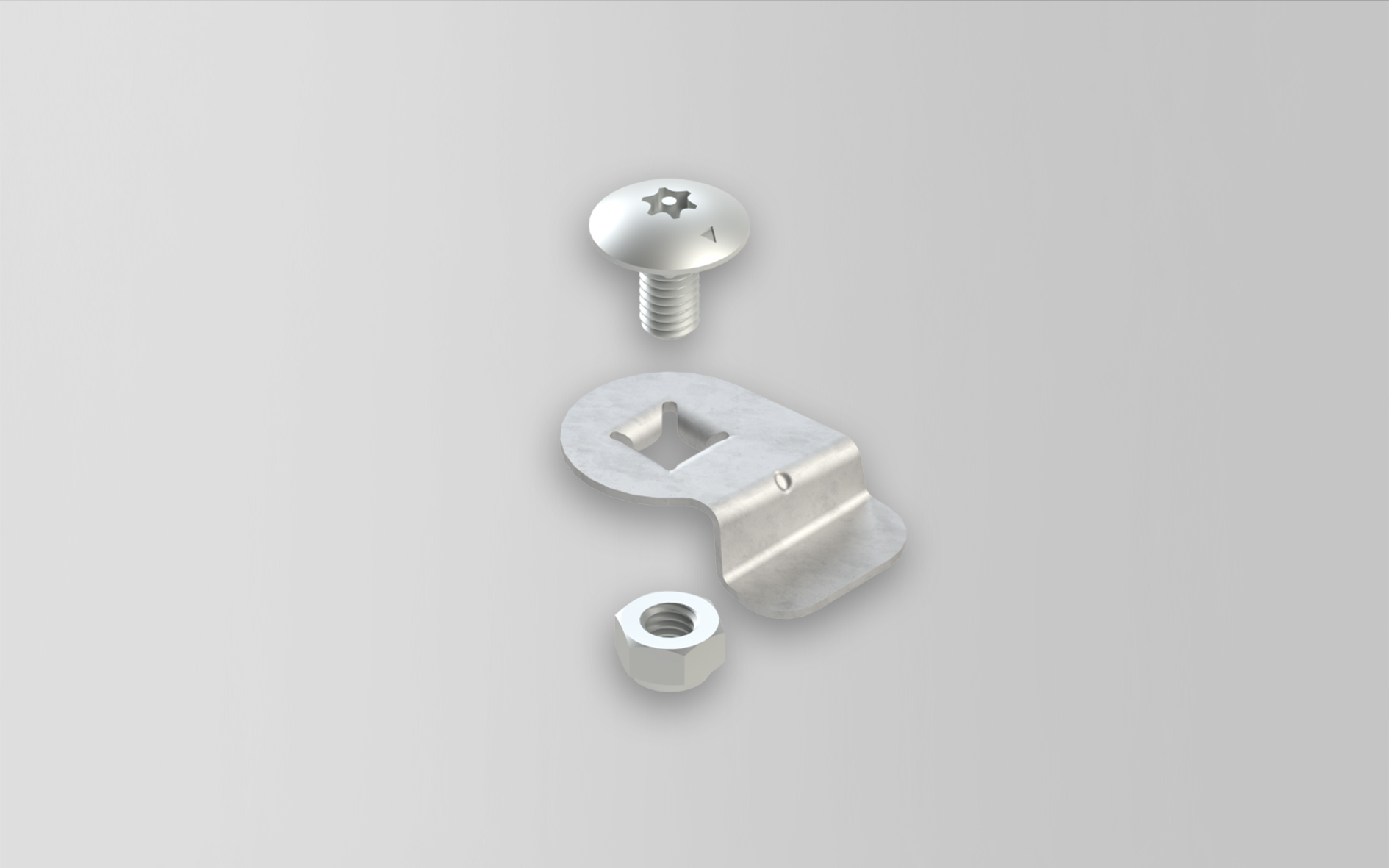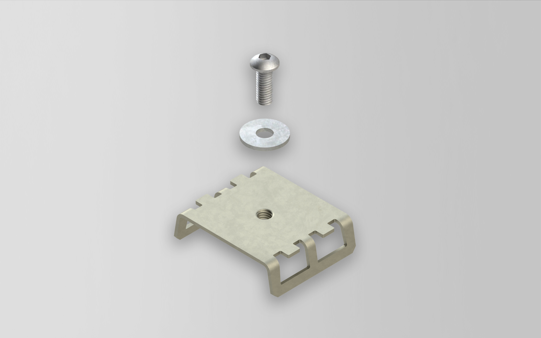 zur Befestigung von Kabelrinnen auf dem Abstandshalter AHG 62 sowie für Gitterrinnen mit nur einem Bodenlängsdraht ≤ Ø 5 mm unter Verwendung der Gitterrinnen Wand- und Auslegerbefestigung GTWAB 50