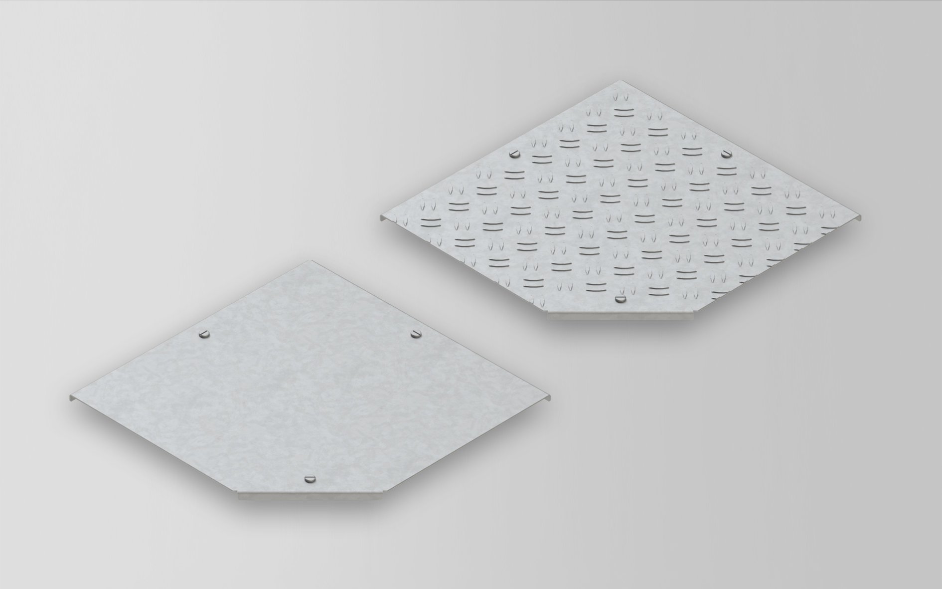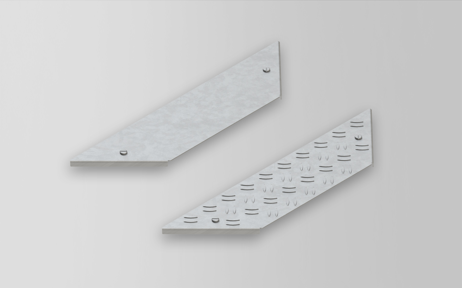 einteilig, kantige und flache Ausführung, mit ungelochten Seitenholmen jedoch mit gelochten Verbinderlaschen und Bodenlochung